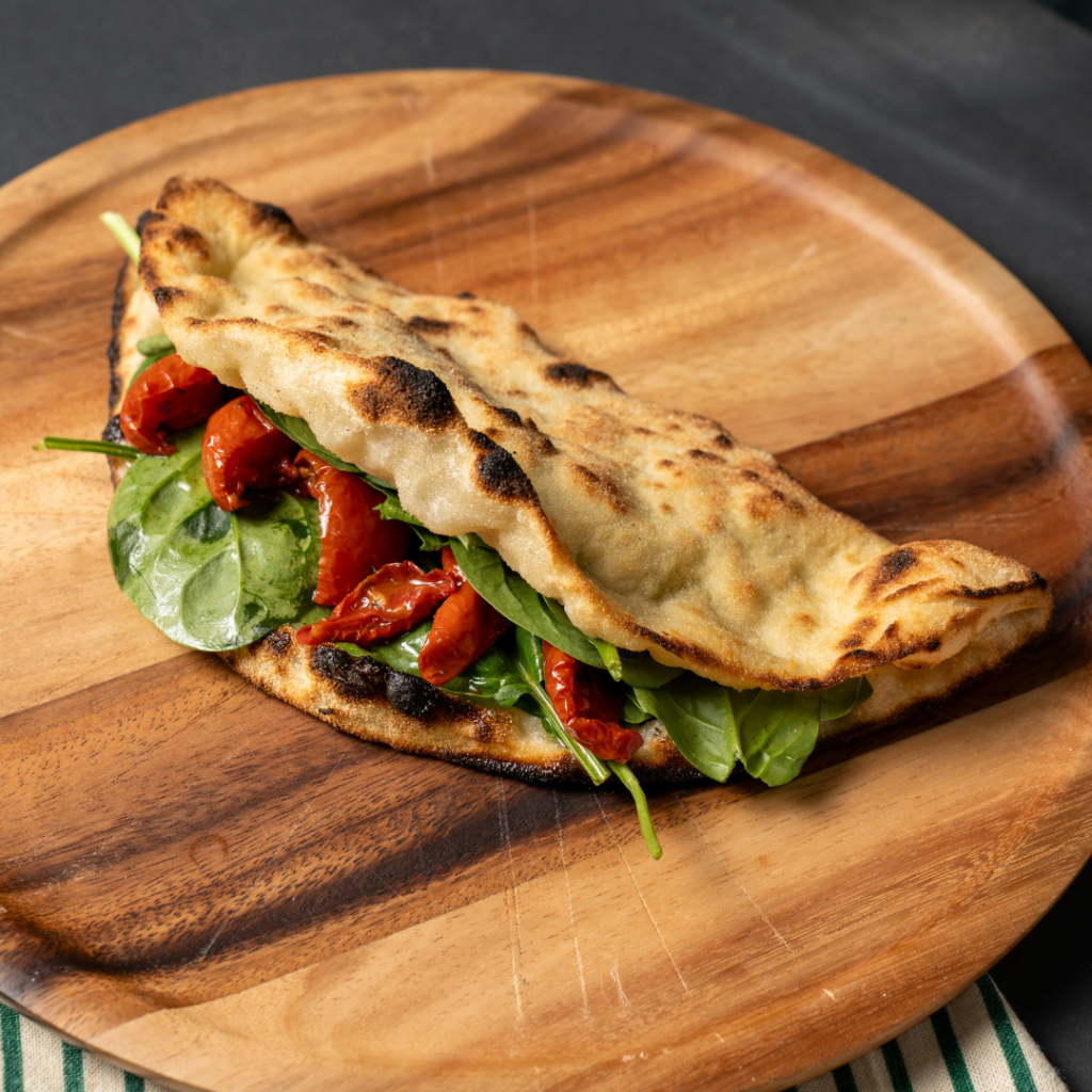 Fresh Stone Baked Bun, Mozzarella Fior di Latte, fresh spinach, juicy sun-dried tomatoes, a refined touch of balsamic, and a drizzle of hot honey for that perfect sweet-and-spicy kick. Vegetarian food out here doing overtime